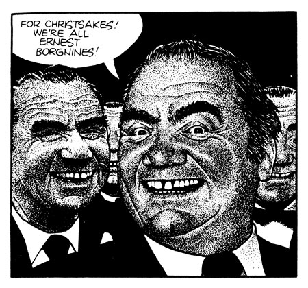Borgnine didn’t give a damn. He was up there on the screen, radiating goodwill while Ethan Hawke angsted out the nature-nurture debate for the 21st century. Borgnine was a true star, a vehicle for our own emotional freight. Like a good parent, Borgnine – eternally comforting, tolerant and reliable – seemed to simply endure my obnoxiousness.