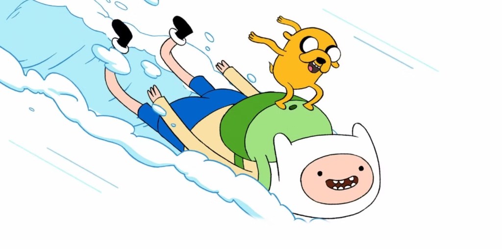 Over the past several months I’ve been working my way through all of Pendleton Ward‘s Adventure Time, in part because it comes in 11 minute segments that are easy to squeeze into tiny cracks of spare time, but mostly because it’s awesome. There are lots of things to love about it – the humor, the weirdness, the clever allusions to art and literature – but I think the thing I enjoy most is how creatively they play with narrative. Watching all of the ideas they’re able to explore by ignoring the usual boundaries of time, space and consequences makes me realize how limiting conventions can be.