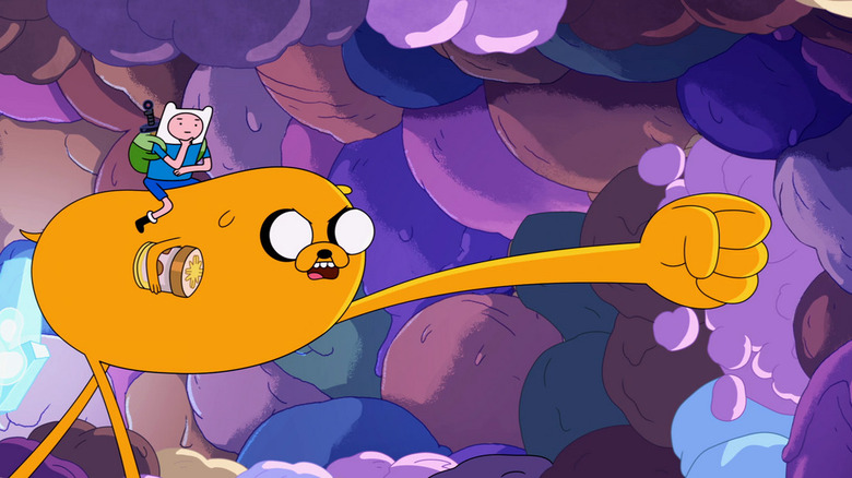 Sometimes they’ll write something in and explore it for awhile, then write it out again when they’re done. There’s a story arc where Jake’s girlfriend, Lady Rainicorn, is going to have puppies, and since Adventure Time is about Finn and Jake living together in their tree house I kept wondering how they would handle Jake’s responsibilities as a dad. I couldn’t imagine how they were going to make it work, and the answer was that they didn’t even try. Jake is a dad for one 11 minute episode, where it turns out baby rainicorns grow up so fast that they were all already older than Jake and he was back on the sofa with Finn by the end of the episode.