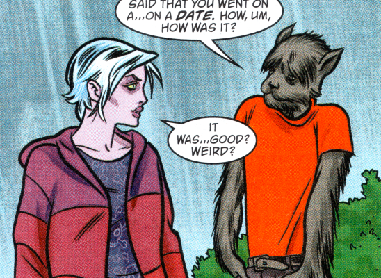 In the comic, the cosmic returns to the immediate, the personal. When Xitalu begins to obtrude on our reality, Gwen goes looking for her friends. And as she does, her friends, family and even people she doesn’t like very much all converge on the bus station as everyone desperately seeks to escape Xitalu and the terrible beings accompanying him. So Gwen is put in the immediate position of choosing whether or not she kills everyone she loves to save the world. And all those people, vampires, were-terriers, family she hasn’t seen in months have lives that aren’t all about Gwen. Lives we see in the comic. And in the end, Gwen makes her own plan. And I don’t really think it’s a spoiler to say: We’re going to make it after all.