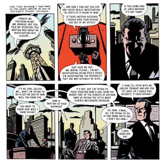 You can catch a glimpse of Cooke’s hopes and fears in “Selina’s Big Score.” His fear that maybe this backstory in Detective Comics was his only chance to do a Parker story, and that he had to do it under wraps. And his hope that he could one day do straight adaptations of Westlake Parker novels.