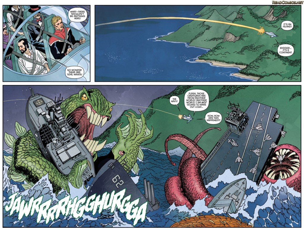 Flash Gordon: Kings Cross is much more light-hearted space opera than Darth Vader. And yeah, I wrote about Parker and Evan “Doc” Shaner’s Flash Gordon Omnibus in “10 Comics I Liked In 2015,” I can’t live by my own end of year list rules. I love these Flash Gordon comics; they’re so fun. While I miss Doc Shaner’s style, Jesse Hamm and Grace Allan do a great job of drawing fun action and fun action is a large part of what I am here for. And as in the previous Flash Gordon storyline, Dale Arden, science reporter, keeps her Han Solo duds, which also makes me happy. Fun space adventure and a non-evil, scientastic female character who takes after Han Solo is really all I could want, except there is still excellent Dr. Hans Zarkov humor, fights and giant monsters.