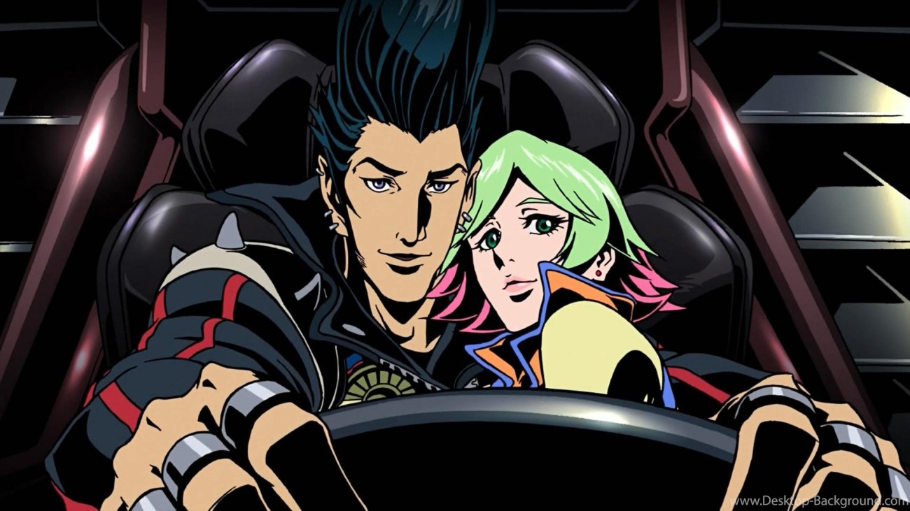 Also on the circuit is hot-shot driver Sonoshee (Yu Aoi), who beat JP during their last race and on whom JP has a crush (as well as a secret memory of). In an era of anime characterized by either awkward young weirdos and simpering waifs who need to be cradled and protected, JP and Sonoshee are refreshing grown up and likable characters — not without their quirks of course. We are talking about a guy with a three-foot pompadour and a woman seemingly composed entirely of day-glo. But their relationship as it grows throughout the film is sane, mutual, even cute, and lacks the creepy vibe that makes so much modern anime so thoroughly revolting. Granted, it’s only Sonoshee who turns in the movie’s obligatory nude scene. I could have done with the same from JP (JP does appear topless as well, though I think it means a little less from a cultural standpoint). But even then, and acknowledging that yes, this is gratuitous fan service, the situation in which the nudity occurs is pretty innocent and realistic: sitting around in her apartment, watching television while she enjoys a cigarette.