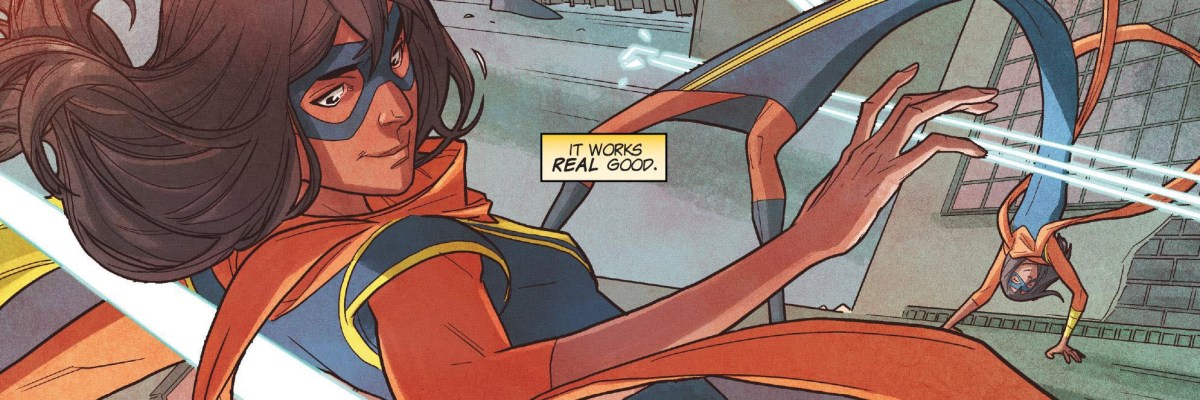 There are some people who are tired of superhereoes, mutants and Inhumans and they are looking to make Jersey City great again. They call themselves K.I.N.D. and hassle anyone they think is an unregistered metahuman. They especially don’t like Ms. Marvel and want her and her kind to “go back to New York City” and stop causing trouble just by existing. Wilson’s allegory could be heavy-handed, but it isn’t. Wilson’s writing is lovely and Ms. Marvel is still a fun superhero book. There’s fun superhero art, too, with nice clean lines. And Ms. Marvel’s bendiness is rendered somehow less disturbing than Mr. Fantastic, or, god help us, Plastic Man. And there’s a hero being heroic and brave when it is hard or scary, which is kind of the point.