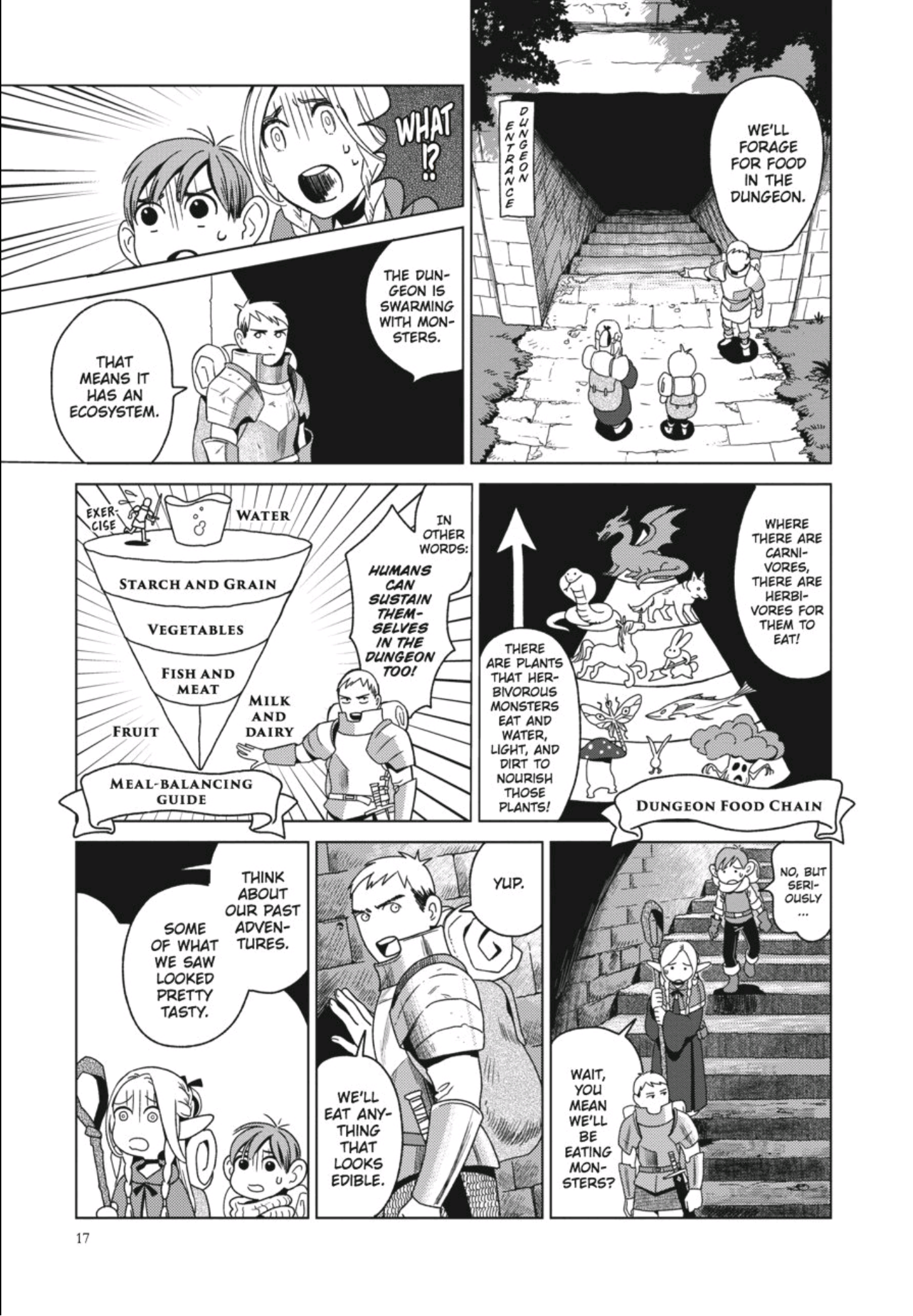 As their adventure goes on, it becomes increasingly evident that Laios has been waiting a long time to eat monsters. He even has a well-annotated book on their safe preparation, The Dungeon Gourmet Guide. I believe that he wants to rescue Falin before the dragon “passes” her, but Laios is not eating monsters only because he has to. Laios is eating monsters because he wants to.
