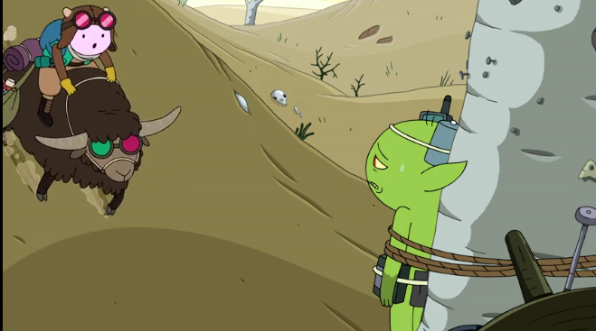 In the current season, we have learned about Treetrunks the elephant’s past as a pirate queen, explored the dual mystery of that time Jake was blue and his stretching powers, learned about Princess Bubblegum’s childhood and her family, Aunt Lolly, Cousin Chicle and Uncle Gumbald. I love her post-apocalyptic yak and its 3D goggles.