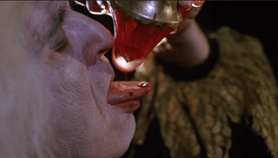 Subspecies (1991) begins like so much in life, with an inter-generational domestic squabble. A vampire in the shape of an old man, King Vladislas (Angus Scrimm), puttering around his lonely castle, licks a precious few drops from the Bloodstone, the series McGuffin that is part holy relic, part Everlasting Gobstopper. Like the synthetic True Blood in Charlaine Harris’ Southern Vampire Mysteries series and the sexy HBO series it spawned, the Bloodstone enables vampires to subsist without killing people, as it miraculously leaks the blood of the saints on demand, and this special manic pixie dream blood also enhances the supping vampire’s power – although the powers of vampires in the Subspecies series can be inconsistent in any case. The King realizes he has company; it’s his exiled son Radu (Anders Hove), and Radu has a bone to pick with daddy. A festival celebrating the truce between the vampires and the Transylvanian locals is nigh, and during the festival, Radu has gleaned that his father intends to give the Bloodstone, his birthright, to his younger half-brother Stefan. The King rebukes Radu and traps him in a cage, but Radu responds by breaking off his own monstrous claw-like fingers, which then turn into  several stop-motion homunculi. Everybody, meet the titular Subspecies. This is pretty much all they do, but they’re definitely more reliable thralls than your average Renfield and kinda cute to boot.