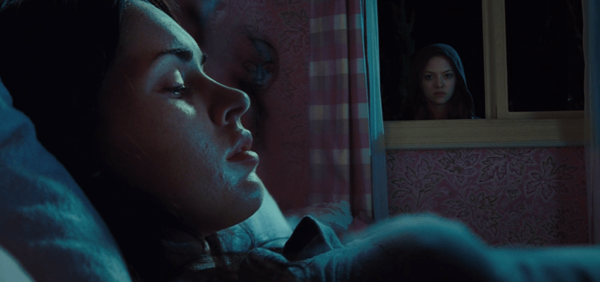 The story itself is pretty simple. Cheerleader babe Jennifer (Fox) has been best friends with brainier heroine Anita, or “Needy,” (Amanda Seyfried) since they were little kids. “Sandbox love never dies,” a flat affect Needy narrates from a solitary confinement cell at the beginning of the movie, but from the other end of Jennifer’s tragic fate. Needy’s narration takes us back to the beginning, as Jennifer coaxes Needy into canceling plans with her boyfriend Chip (Johnny Simmons) so she can go with Jennifer to a rock show in their rural town’s sole, sad excuse for a club, Melody Lane. Jennifer has a crush on lead singer Nikolai (Adam Brody). The band, Low Shoulder, have their own nefarious reasons for playing such an out of the way, small time venue. They want to find a virgin in the audience and sacrifice her to Satan in exchange for Maroon 5-level fame and fortune. They think they have a winner when they meet Jennifer, and Needy, overhearing them speculate whether Jennifer is a virgin, hotly defends her friend’s virtue – despite, of course, knowing Jennifer isn’t a virgin, which turns out to make a big difference in what happens next. During their big number, Melody Lane burns down in a not-so-freak accident. In the confusion, Low Shoulder abduct Jennifer as Needy stands by, powerless to convince her friend not to go with the cool band in their cool van. That night, Jennifer shows up at Needy’s house incoherent and vomiting black sludge, nearly attacking Needy before disappearing back into the night. Over the next several months, as the small town of Devil’s Kettle slowly recovers from the grisly inferno at Melody Lane, Jennifer’s beauty waxes and wanes in time with spectacularly gory murders of local high school boys, and Needy discovers her friend was turned into a succubus by the band’s botched ritual murder. And she’s a succubus with her white-slit eyes fixed on Needy’s boyfriend.