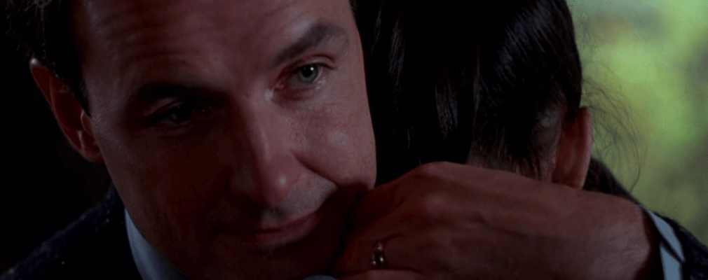 The Stepfather (1987) begins as many a story begins, with a man (Terry O’Quinn) seeing himself in the bathroom mirror as he grooms for the next big chapter in his life. This man in the mirror just happens to be sheeted in the bloody ending of the most recent chapter though, broken bodies of his beloved discarded throughout the smart middle-class home he kept with them. We watch him change faces, swapping glasses for contacts, flannel for a smart suit, beard for a clean shave, until someone else emerges, all but unrecognizable, to stride away from his beautiful house filled with ridiculous carnage, whistling “Camptown Races.” “Wait until your father gets home” is the hackneyed threat/promise of a bygone era when a father’s rule and, implicitly, anger augured accountability and punishment in one fell swoop. In the Stepfather films, the better threat might be “Wait until your father leaves.” He’s actually fairly chill until he decides to kill everyone, particularly given his old-fashioned mores. Across three films and a remake, the Stepfather marries into family after family, single mothers always conveniently thirsty for his decency, and in each he builds a simulacrum of nuclear family goodness. But eventually something goes wrong, he’s found out, and Daddy gotta bail. But he can’t begin a new life without ending the old one. If he let you live, after all, there would be a witness, and that’s something he can’t abide. In the Stepfather’s mind – and he uses too many false names to call him anything else – you have to keep up appearances.