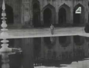 The one flaw in this film is that the romance, established in a flashback about three quarters of the way through the film, is unconvincing and kind of perfunctory.The couple’s backstory isn’t even in Tagore’s original story; maybe the problem here is that its development was cut short in favor of ghostly wanderings or the music, leaving it feeling unsupported, rushed, and out of nowhere. Their bond might also stem as much from his respect of her unwillingness to surrender to the invading Mughals as from actual romance, but I didn’t find the film clear on this point. Mumtaz has spent most of the film silent, so we know very little about her other than that she is a sad ghost who gets dragged away by soldiers. The hero’s historical incarnation is not decisively linked to his current-day one other than through his physical appearance (and in fact, the historical version is reprehensible at first). The film doesn’t quite manage to create for either of them a personality that can carry part of a love story. Giving these two characters just a few minutes more to demonstrate who they are and why they are worth the big risks of epic love would have helped significantly. Even his intense staring into her eyes does not a love story make.