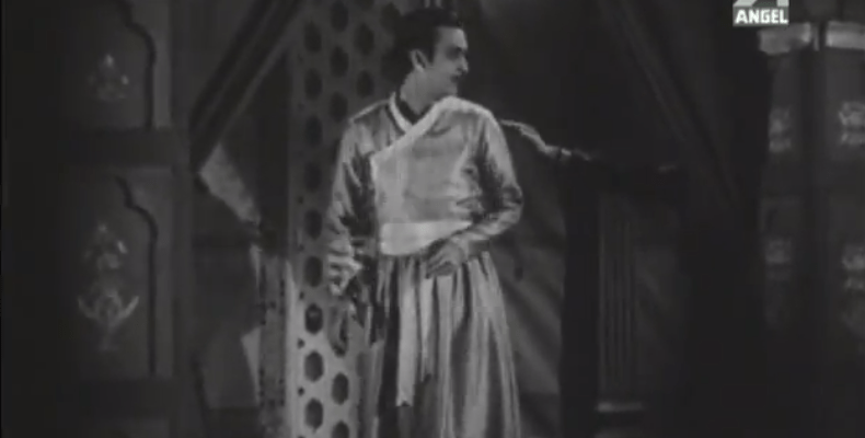 There’s a moment in his interaction with Mumtaz’s ghost when she is still silent and he’s been pestering her to tell him something about herself or why she keeps coming to him, and he finally says “If you won’t talk, then how long can I keep blabbering?” This kind of verbal cuteness resonates with me in a way that Bollywood’s dramatic mountain-top grand gestures can’t always manage. A lot of the characterization is in the writing, sets, and lighting, but he is an actor who can do so much with scraps of text, tiny gestures, and the simplest movement of his eyes.