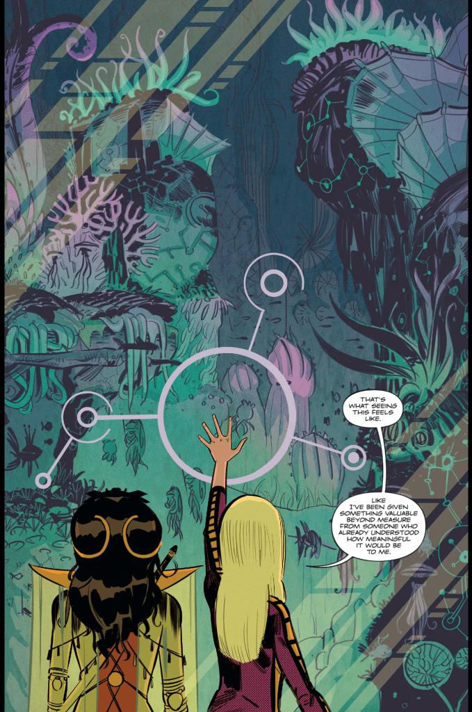 Invisible Kingdom (Berger Books / Dark Horse, 2019). G Willow Wilson, writing; Christian Ward, art; Sal Cipriano, letters.