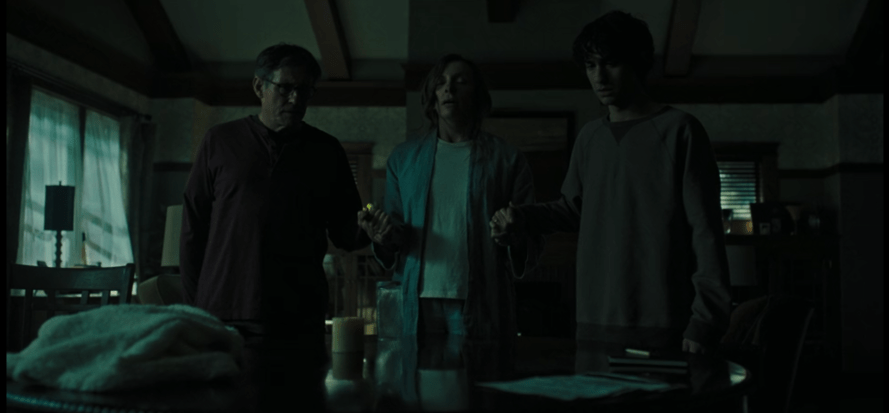 Hereditary begins with the apparent haunting of miniature artist Annie Graham by her manipulative mother, who finally died in hospice after battling dementia, but takes a hard handbrake turn when her son Peter (Alex Wolff) accidentally vehicular manslaughters his younger sister Charlie (Milly Shapiro) in a Final Destination-worthy sequence that will leave no mouth uncovered, no eye unbulged. Annie wrestles every negative emotion a human being has ever been host to while confronted with her husband Steve’s (Gabriel Byrne) exhaustion as her caretaker and protective instincts for their son and Peter’s rapid liquefaction into his own horror and guilt. Compulsively recording her life in her miniature art, but simultaneously pressured by an upcoming gallery show, Annie finds a little relief by sneaking out to a grief recovery group, eventually meeting with sweet, understanding group member Joan (Ann Dowd). Joan is a constructive, even motherly presence, who shares her own bereavement and introduces skeptic Annie to a seance technique that would make even James Randi wet himself.