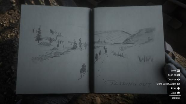 But there is space for you to play other games within the game. Red Dead Redemption 2 features both expansive and beautifully rendered open world and a strong story with clear characterizations. It gives you the chance to tell your own stories in its world. For a while I can pretend I am playing a different game–one where the goal is to pet all the horses. I can play Red Dead Redemption 2 as a horse “re-homing game” that incidentally involves dynamite and duels.** You can pet as many horses, dogs and mules as you can find. Sadly, you cannot pet cats, donkeys or pigs. You can play a game where Arthur works for a dandy finding rare orchids. Or you can play one where Arthur drifts across three states helping strangers he meets like paleontologist Deborah Mason or two starving escaped convicts. You can have Arthur sketch remarkable sights.*** You could spend your time taking photographs and using binoculars to birdwatch. You could go hunting and fishing. You could plan the perfect train robbery. There is no penalty towards stopping the story, beyond some quests never open up. And you know, and Arthur knows, that the story is not resolved.