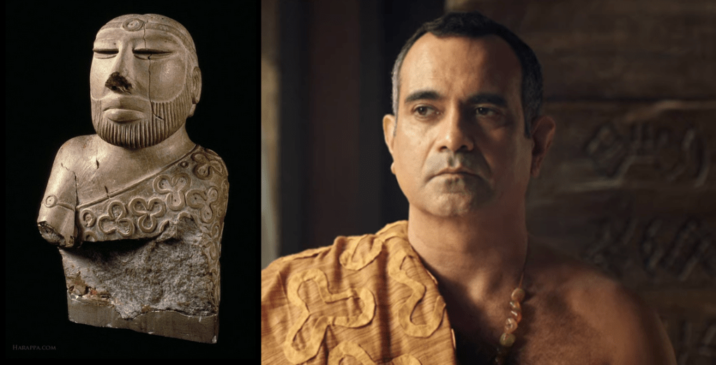 Despite promising that nothing you’re about to see should be taken as accurate, or even related to accuracy, this is not a completely invented environment. Real archaeological evidence is invoked throughout, starting with the film’s title and continuing through elements of plot (indigo farming, the arrival of horses in South Asia, the significance of the unicorn motif that appears on seals), set and costume design, and even a song.
