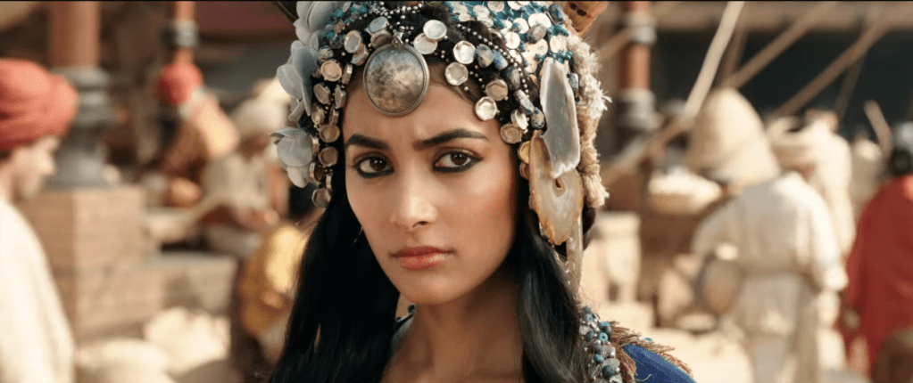 The dullness unfortunately extends to the lead character too. Sarman is a goody-goody with no texture or depth beyond his indigo-tinted dreams of a unicorn. Once he arrives in Mohenjo Daro from the countryside and instantly gets embroiled in high-level politics of which he knows nothing, he never has any questions about what doing the right thing should look like or how he can accomplish it. Chaani is not fleshed out in writing or performance, and the friends and family are bland props for the hero.