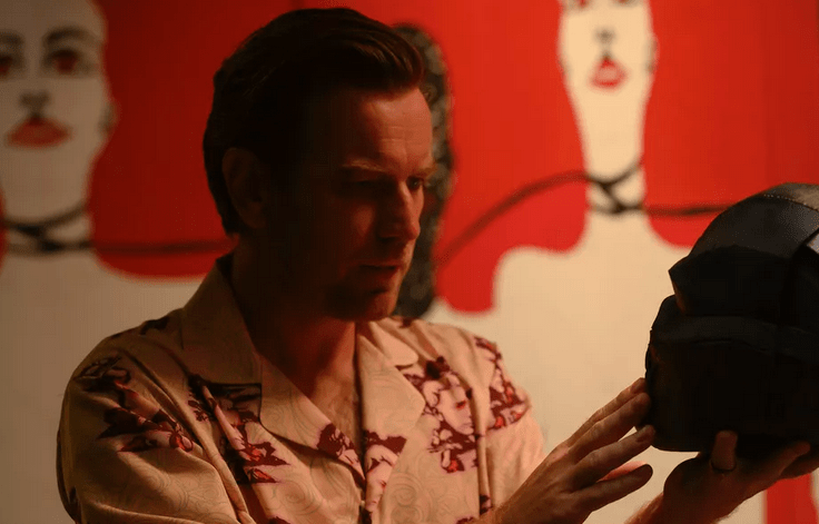 Harley has, in her words, “wronged a lot of people” who feel safe coming after her now that she is, theoretically, no longer protected. The most dangerous one being Roman Sionis (Ewan MacGregor), aka, Black Mask, and his partner in probably all senses of the word, fellow misogynist and serial killer Victor Zsasz (Chris Messina). McGregor’s Roman Sionis reminds me a bit of Dominic West’s take on Jigsaw in Punisher: War Zone. But Roman also reminds me of some kid who adored the coked up villains of John Hughes movies and the tv show Miami Vice, especially if they were played by Sam Rockwell. Roman wears a peach jacket with a with t-shirt and pale yellow pants. He has pajamas with his own face printed on them.