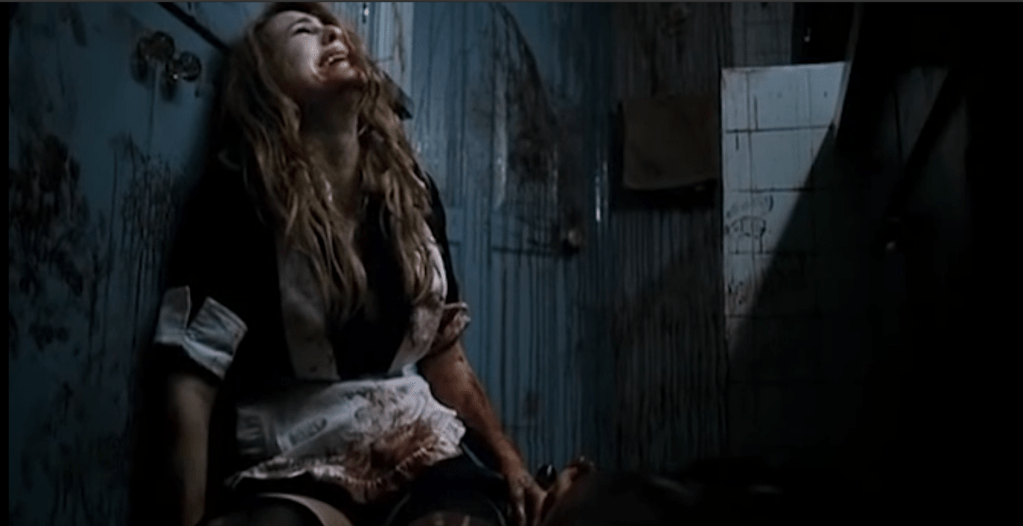At least until Halloween: Resurrection (2002) kind of undoes it. This film opens in hoary slasher film tradition, letting out the old blood before shedding some new blood, revealing Laurie as a catatonic patient in a mental hospital, paralleling Michael at the beginning of the franchise, after it’s revealed her final triumph over Michael was…mistaken identity. Yep, Michael had the foresight to crush a guy’s larynx and put his mask on him so Laurie would kill him by mistake– you know what, forget it. [rubs eyes] Laurie, like her brother so many years ago, was only playing catatonic though, secretly waiting and laying a trap for Michael, knowing he would come to get her, and she almost wins, until Michael uses her self-doubt against her, and that’s the second ending for Laurie Strode. On camera this time at least, but still not the one she earned.