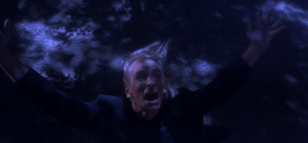 In fact, I should mention there is a third entry into the Warlock franchise, Warlock III: The End of Innocence (1999) that I will not be discussing here, even though it stars none other than Hellraiser’s Ashley Laurence, who I love with the light of a thousand suns, alongside perfectly reasonable Julian Sands substitute Bruce Payne as the Warlock. I saw it once, and then I tried to watch it again before I wrote this, but it didn’t work for me, and that actually helps me test out my Comfort Horror precepts. Warlock III, while it stars Laurence, who is aesthetically pleasing, and is predictable, is not very competent in my view. Thus it didn’t work for me. It wasn’t fun to watch. Maybe your mileage will vary? Since there is no connecting mythology, the only thing making Warlock III at all like my Comfort Horror Warlock films is the supernaturally-endowed, ha, blonde British villain with a receding hairline dressed to narrate Infiniti commercials. That alone ain’t cutting it. You must have a serviceable story decently told, and if you don’t…send ’em to the guy and his snarky robots in low earth orbit, I guess.
