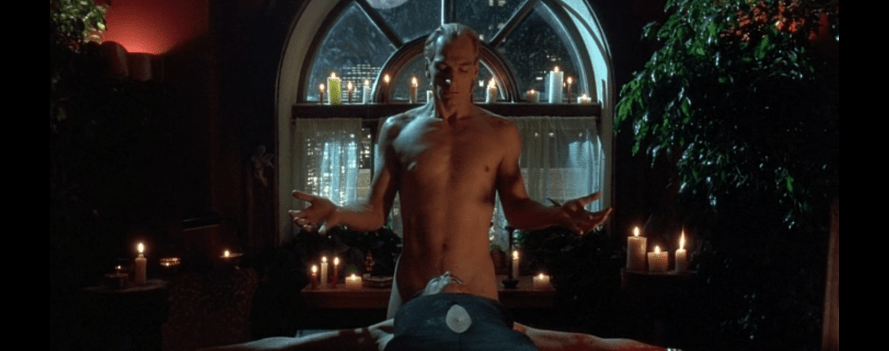 The Warlock movies represent a prime example of Comfort Horror, which is something I just made up, but dammit, you know what I mean, right? Comfort Horror is the cinematic cousin of what South Park referred to as Informative Murder Porn, or you could think of it as the spicier version of Christmas romcoms on the Hallmark Channel. These are horror films that are more balm than beast. Just scary enough, but not too gross to snack during; just compelling enough, but not so much that you’ll think about them when you’re trying to sleep. I mean, no one’s afraid to turn off the light lest Julian Sands appear, right? That’s basically a Skinimax premise anyway. Comfort Horror offers you manglings you can nap to, slayings you can do sudoku by, but crucially, it must still be good enough to watch and keep you engaged. You have to actually like it and follow it; I’m not talking about a butcher block ASMR. Basically, in order to have a good Comfort Horror title, you must have the following: it must be competent, it must be predictable, and it must star someone aesthetically pleasing. A haunting, but not jarring, soundtrack, a level of gore that you personally find non-objectionable, and first coming across it as a kid or early teen are all big pluses, too. The story should be like a ghoulish old friend that you kinda thought was cute when you were twelve. For me, the Warlock movies tick all those boxes. So let’s dig into this concept a little bit with my old buddies.