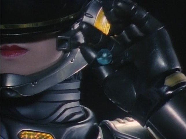 Lady Battle Cop’s armor bears special mention because it’s beautifully designed and executed. Her intro has the camera spinning around showcasing every detail, finally settling on her face to reveal that it has a retractable mouth-piece that protects the bottom half of her face à la Casshern. This might be a little poke at the fact that RoboCop has no such protection and thus a weakness. The small details are fascinating–Kaoru’s suit has high heels that give a satisfying metallic click when she walks (and also have spring action in them) and her helmet has a dangling sparkling earring because why wouldn’t you want to accessorize? Other than one titillating shower scene, Kaoru isn’t objectified in the film because she is a woman, and she kicks a whole lot of ass the entire runtime.