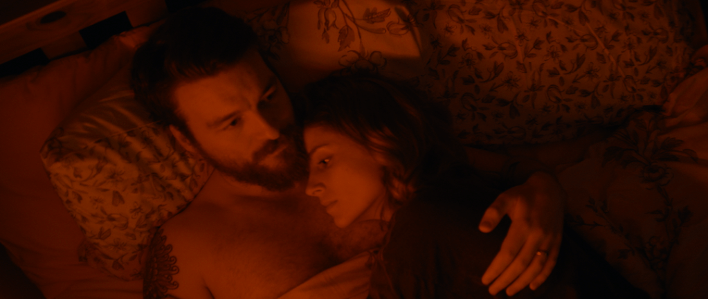 Rose (Sophie Rundle) and Sam (Matt Stokoe) live in a isolated cabin in the forest, possibly in the Lake District National Park in Cumbria, UK. (Sam tells Rose that Keswick*** isn’t far). They are deliberately isolated and Sam takes great care to make sure that no one knows where they live, not even the man who regularly delivers their petrol and post. During the day, Rose works on her book while Sam does chores outside. They have dinner together every night. Sam and Rose obviously love each other, but they have some typical relationship issues and there is an extra layer of resonance in discussions like, what it means when Sam says Rose looks lovely “today.” Rose has body image issues. And Rose is sick, more than sick. She’s worried that Sam is monitoring her symptoms. And he would be foolish not to because whatever has happened to Rose has left her growling, and possibly echolocating, in the presence of blood. When Rose’s symptoms flare up and she asks for help but feels guilty and ashamed, Sam tells her, “It’s good you tell me things,” as people who love each other do when they are dealing with something difficult together. Rose only leaves the house once for a date night. They take a walk in the woods and Sam tells her all the different things they would eat together and about what a day at the beach would be like for them. At home, what Rose eats is blood provided to her by Sam. His attitude towards it is as a mundane act of love—something that needs to be done and that he does because he loves Rose, the same as fixing the sink or cleaning the bathroom.