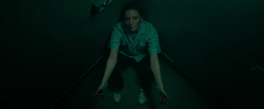 In Saint Maud (2019), the first feature from writer-director Rose Glass, a troubled young hospice nurse becomes obsessed with saving her dying patient’s eternal soul. It’s a hefty premise that might feed into an Oscar contender, the kind with its stars looking skyward past each other on a sepia-golden poster, or even a bittersweet dark comedy–Saint Maud itself pockets a few mordant giggles from time to time–but as cagey as Glass is about Maud herself, she’s never ambiguous about what kind of film this is.* She makes that plain from its first minute: all blue-filtered darkness and the sound of something dripping as a young woman (Morfydd Clark) in medical scrubs and gloves, blood inexplicably smeared across her mouth and cheeks, slumps in a corner across from a hospital bed. Glass conceals all details about the shape in the bed in the distance of a silhouette, except that most essential detail. The bed is full while it is also empty.