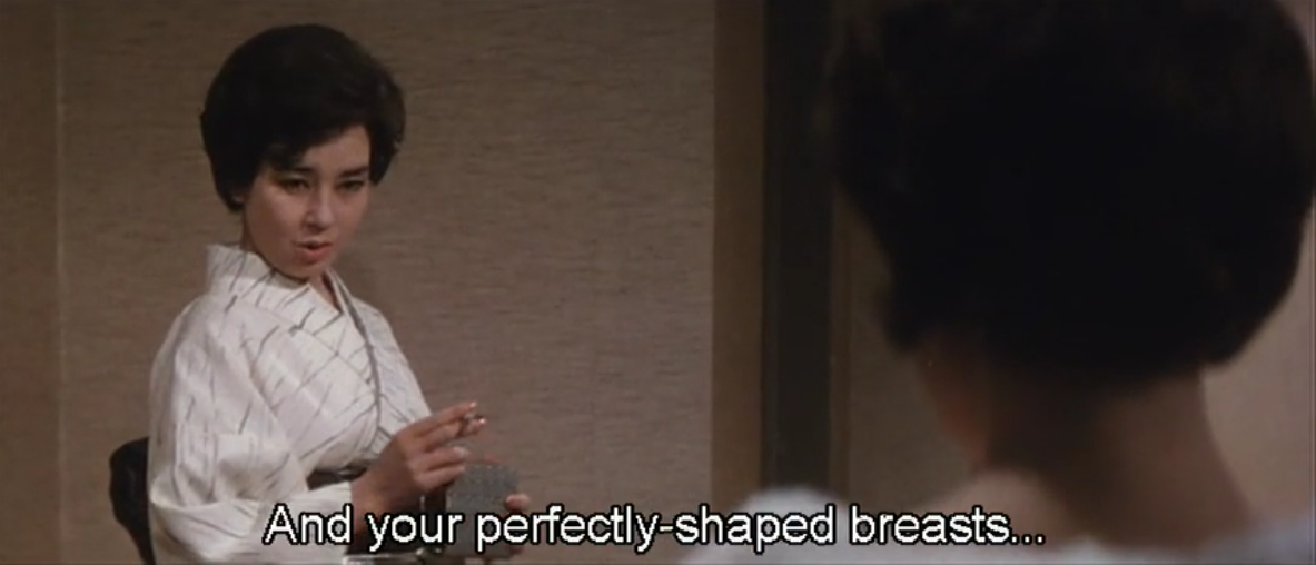 Directed by the prolific Umetsugu Inoue, The Black Lizard (1962) is one of several film and television adaptations of the eminent writer and critic Edogawa Rampo’s eponymous story. This version is the first of two based on the still performed play by the ever-complicated Yukio Mishima. Kaneto Shindo (Children of Hiroshima (1952), Onibaba (1963), Kuroneko (1968)) wrote the screenplay for the 1962 film, based on Mishima’s stage adaptation. The film was produced during Rampo’s lifetime, but I’m not sure Mishima was pleased with it. He went on to have a cameo in all his ripped, shredded, jacked and masochistic glory in The Black Lizard (1968), directed by Kinji Fukasaku and starring famed drag queen and cabaret performer Akihiro Miwa as the artful thief and murderer. This second adaptation is more famous in the English-speaking world. But I love The Black Lizard (1962), because sometimes you want a drag king. In this version, Machiko Kyō plays the Black Lizard. Kyō is better known for more respectably dramatic roles in films including: Rashomon (1950); Ugetsu (1953); Gate of Hell (1953); and, Floating Weeds (1959). And well, she also played Lotus Blossom opposite Glenn Ford and be-yellow-faced Marlon Brando in Teahouse of the August Moon (1956) the same year she played Mickey in Kenji Mizoguchi’s Street of Shame. Kyō’s performance as the Black Lizard is delightful.