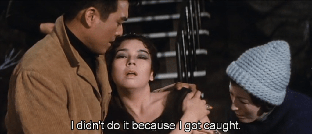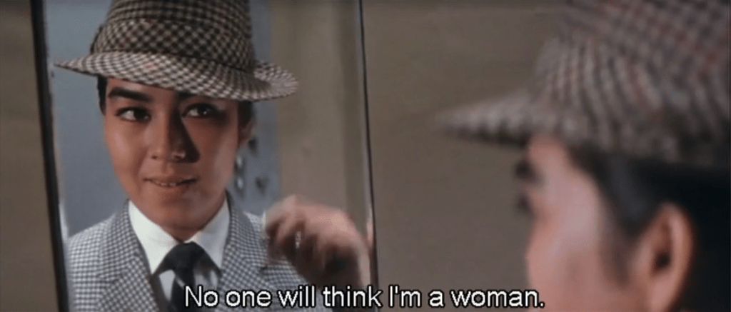 And it doesn’t feel like the tragic impossible love as in so many queer depictions. The end of the 1968 film kind of does to me. Her death a demonstration that underscores the sincerity of her declarations. Both of how she feels and how she feels about having been revealed or boxed in criminally and in terms of her identity. It might also be Black Lizard’s final assertion of her identity and her assertion of her control. She will not be someone else. She will not be “just a woman” as Sanae or her decoy call her when they realize she loves Akechi. The Black Lizard will be herself till the end. And maybe next time she and Akechi meet, they will be on the same side of the joy of artful crimes.