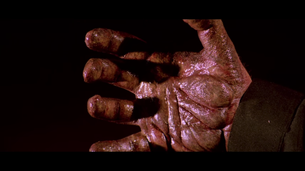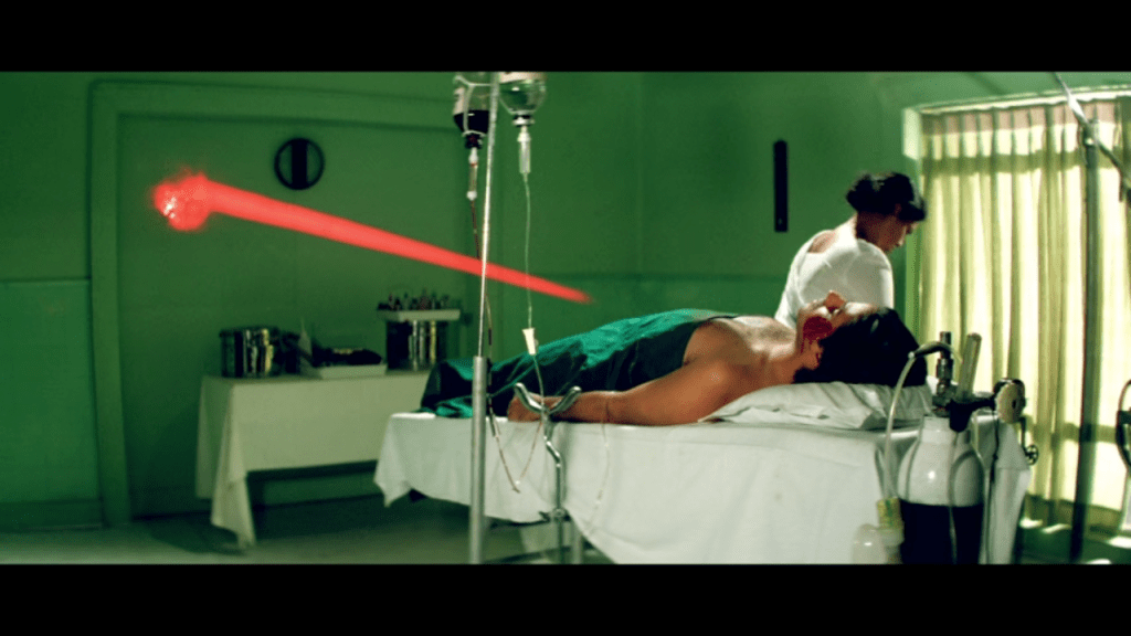 The doctors rush back in and marvel at a dead man returning to life. Vicky continues to have flashbacks of the tiger, and one wakeful night investigates footsteps outside his door, only to find Arun! In the only moment of the film in which I agree with his choices, Vicky is confused and exclaims “What are you doing here? You’re supposed to be dead!” Arun explains that Vicky is no longer really himself and that the only right course of action is to jump out the window in order to save lives. Even people more decent than Vicky—an admittedly low bar—would probably balk at this suggestion, and Vicky shouts that he’d rather live as a demon than kill himself.