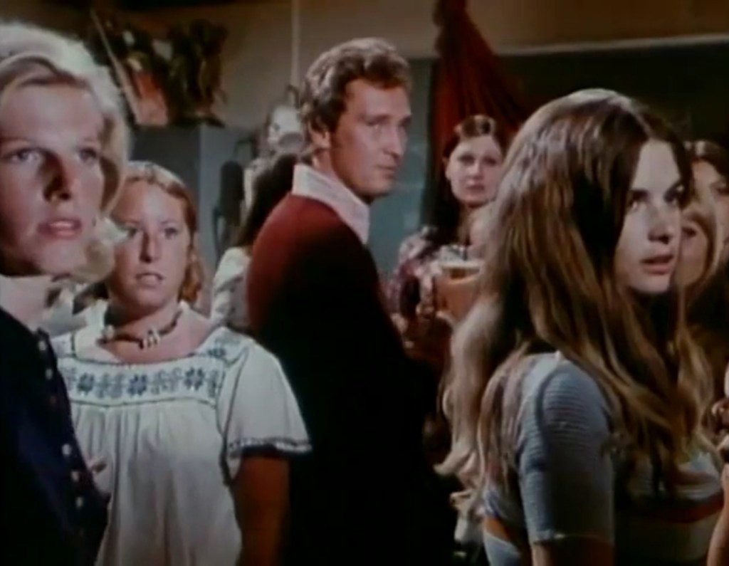 Satan’s School for Girls (1973) is no doubt one of the more memorable and influential of ABC’s horror movie entries, so much so that it ultimately warranted a remake in 2000 starring Shannen Doherty and returning champion Kate Jackson. This was a Spelling-Goldberg production, and at least two of these actors, Kate Jackson and Cheryl Ladd, would soon be starring in Charlie’s Angels. Our protagonist is portrayed by Pamela Franklin, who made appearances in many movies and television shows, but horror fans will recognize her as one of the children from The Innocents (1961) all grown up, as well as the star of Necromancy (1972) and The Legend of Hell House (1973). The always-entertaining Jo Van Fleet makes an appearance as the stern-then-hysterical school mistress Mrs. Williams, and Lloyd Bochner portrays a terse and doomed Professor Delacroix. The smirking, flirty art teacher Dr. Clampett is brought to us by Roy Thinnes of The Invaders (1967).