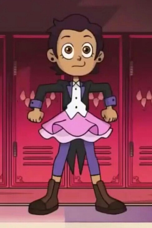 The most obvious queer storyline is Luz falling for a girl at magic school, but it runs much deeper than that and a bunch of the other characters read as pretty pansexual or gender diverse as well. Terrace has been clear that Luz is bisexual and the outfit she wears to Grom (the Boiling Isles’ predictably dangerous version of Prom) is classic queerness: a purple-cuffed tux jacket, pink tutu, purple leggings and big stompy boots. Her alternate outfits were a batman costume and an otter suit, which leaves me thinking that possibly her gender is actually otter? Eda herself always came across to me as an older queer punk, with her wild hair, ripped dresses with boots, and “whatever, don’t tell me what to do” attitude to authority and conformity, so her brown 70s Grom suit and the introduction of her non-binary ex in the second season just solidifies that. Also, I’m not sure what’s going on between Eda’s sister Lilith and Hooty the disturbing house demon, but it seems a lot like romantic friendship at least…