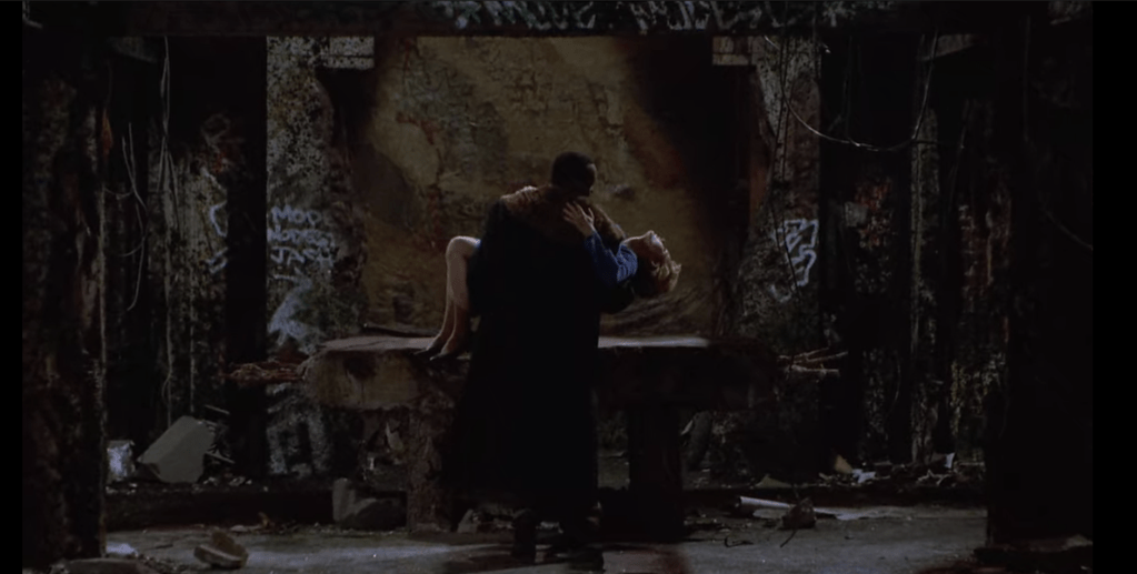Which brings me back to Helen and her own tragic end. “It was always you, Helen,” reads the graffiti in Candyman’s inner sanctum, depicting his lost beloved as a dead ringer for Virginia Madsen. Forgiving for a moment my intense hatred for the dead-lover-reincarnated trope, the poignance of Candyman reaching through time to liberate his reborn love into the blessed condition of being an eternal Monster Meme does wound. Get you someone who looks at you like Candyman looks at Helen, although probably not while kissing you with a mouthful of bees. For the purposes of the story though, I think it sadly only constrains Helen, another way of making her agency and ambition void, and that’s disappointing considering how driven and fierce she was to get to that inner sanctum. Really I would think Helen and Daniel have enough in common without a little destiny tacked on, but maybe that’s just me.