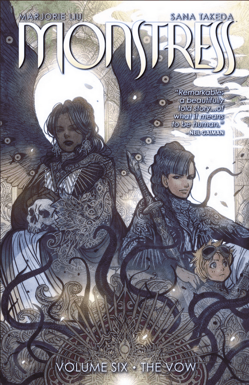 Monstress, Vol. 5: Warchild (Image, 2020) and Monstress, Vol. 6: The Vow (Image, 2021) Marjorie Liu, writer; Sana Takeda, art; Rus Wooton, lettering.