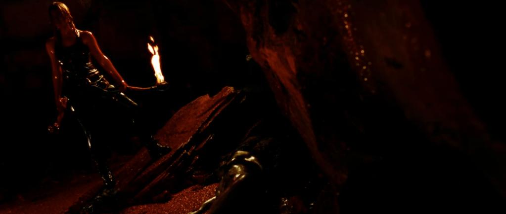Now, many, if not most, horror movies require someone to be stupid at some point. Signs dismissed, strange sounds ignored or maybe strange sounds investigated, crazy old-timer’s warnings laughed off. Quite often, a stubborn man will refuse to give credit to his girlfriend’s intuition. Doomed student filmmaker Heather spent most of The Blair Witch Project (1999) insisting they weren’t lost. So, yes, Juno is indeed incredibly stupid here, almost enough to eject you from the movie, but I do want to give Marshall and actress Natalie Mendoza credit for making her actions personally consistent. I mean, all we really know about Juno going into the caves is that she’s a bold leader, weird about her relationship with Sarah, and somewhat shady, so check, check, and check. But it’s more than that.