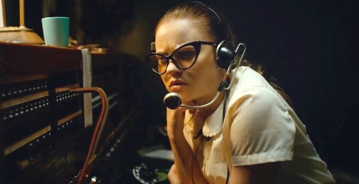 The high school is a big circle of light and life in the darkness. Virtually every person in town (all 492 of them) are attending the game, which makes the landscape that Everett and his friend Fay Crocker (Sierra McCormick) move through for most of the film a ghost town. The camera follows them down the empty streets as Everett walks Fay to the telephone switchboard office for her shift, pretending to interview her about the futuristic predictions she’s been reading about in her science magazines. It settles in for a long static shot as she listens to Everett’s radio show and deftly operates the switchboard, until both the show and one of the phone lines are interrupted by a strange sound that she’s never heard before. That’s when things slowly get creepy.