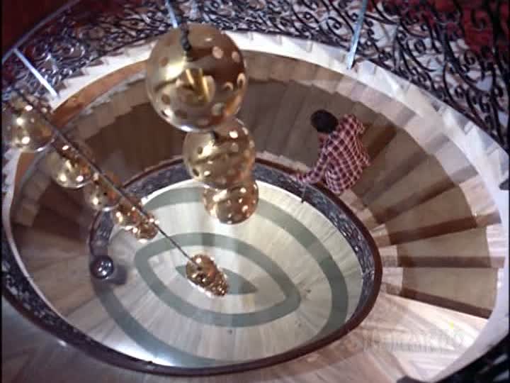 My favorite staircase AND my favorite domestic interior appear (pictured in the collage above). Both of these spaces turn up in multiple films, and I don’t know if that means they are sets that a studio invested in or if they’re real buildings whose owners enjoyed a side hustle in location filming. These are not the most flamboyant spaces you’ll see from the 1970s, but they offer dizzying camera angles and pattern mixing.