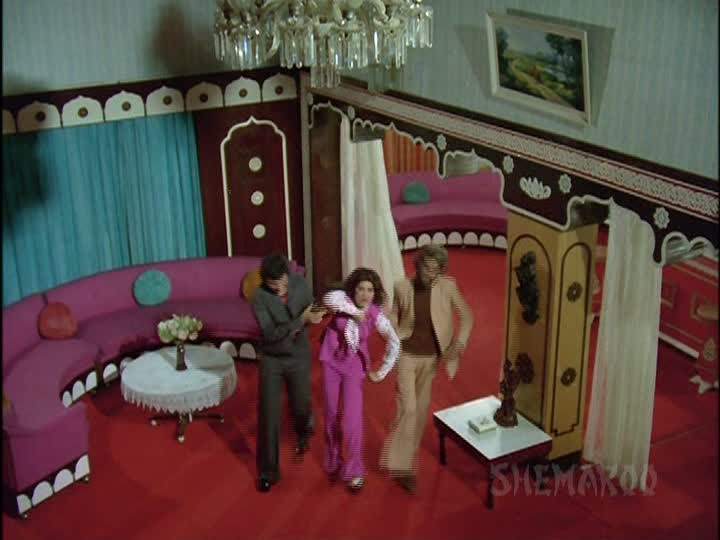 I do prefer the comic moments, though, and there are some great nonverbals and facial expressions as they work on their cons, particularly in the song, “Darbar Mein Uperwale Ke,” as they infiltrate a treasure trove in disguises. This film is full of evidence of why these two actors had the stardom they did, and they seem to love to perform exactly what is asked of them.