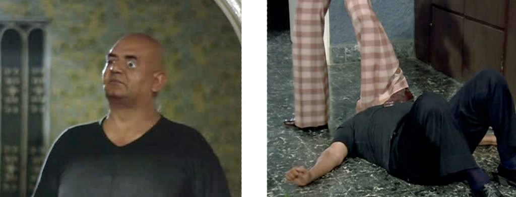 Both leads have appeared here on the Gutter in films where they had the moral high ground. Khanna appears in the investigation-ish films Maha Badmaash and Elaan and Bachchan as the cop in the Face/Off remake Aks. But in Hera Pheri they’re in the middle: not as bad as the people they try to steal from and definitely not as bad as the mysterious man who murdered Vijay’s father. Despite their trauma bonding, they are not as tragically afflicted as Vijay’s mom’s shock-induced illness or as the father who had to sell Ajay off as a child to pay for his wife’s medicine but she died anyway (this is a ??? detail that I hope makes more sense in Hindi).Β