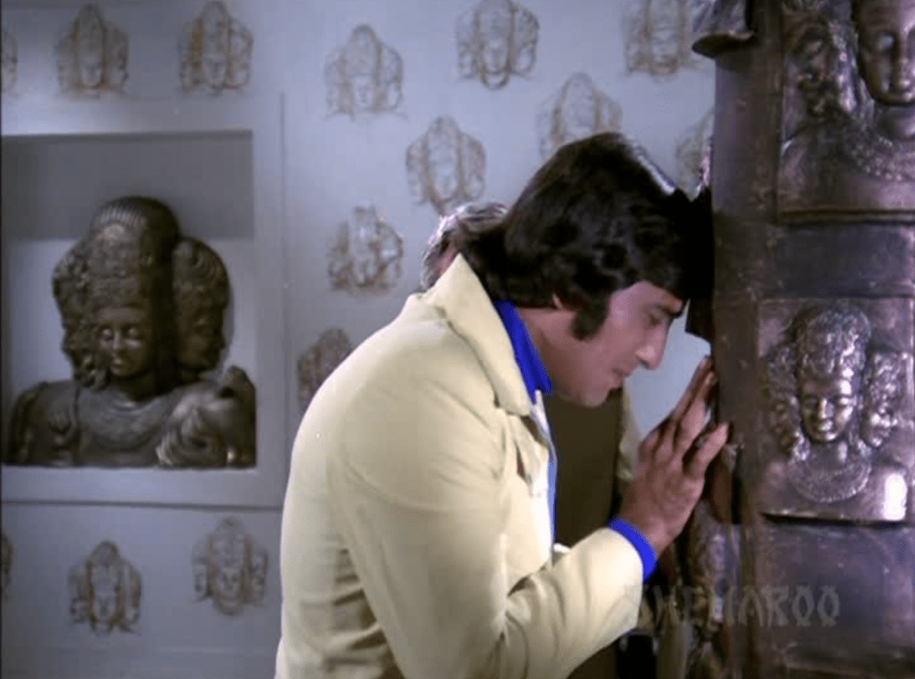 From the get-go, this film stays true to its titleβ€”which translates to something like monkey business or foul playβ€”and barely lets up. The story featured Ajay played by Vinod Khanna, one of my favorites from this era, who left Bombay cinema at the height of his fame to be a part of the Osho compound in Oregon, though I couldn’t spot him in the footage in the Netflix documentary Wild Wild Country, and Vijay, played by superstar Amitabh Bachchan. From the moment we meet them, they are up to mild forms of no good, swindling gamblers at a casino who themselves seem fairly shifty.