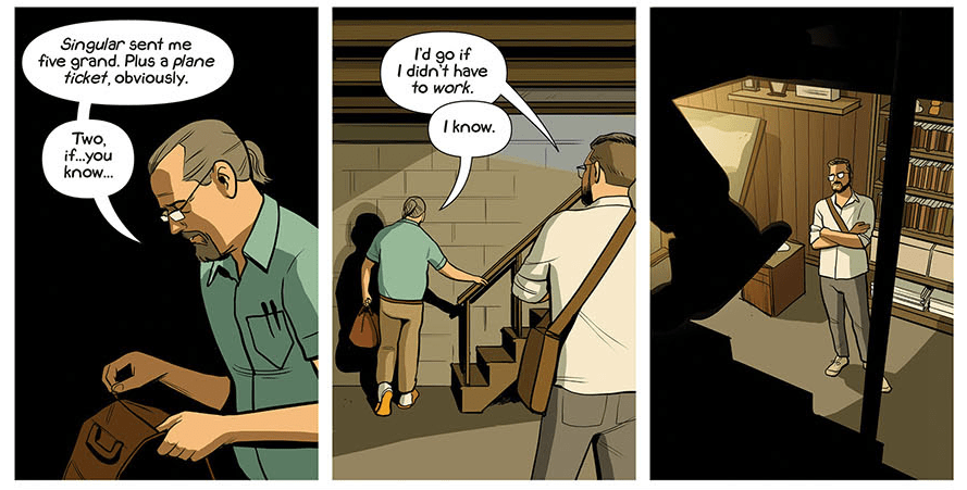 Public Domain is a interesting comic for Chip Zdarsky to be making. He’s written Howard the Duck, Spider-Man, Daredevil and Batman. And Public Domain feels very pointedly about not just comics and comics history, but about Marvel, Marvel Studios and Disney. It is interesting that he writes a comic about the ways that comics creators are screwed by the large companies that own the rights to their work. But then Zdarsky is nothing if not a sassy comics creator. In Public Domain, Syd Dallas, the co-creator of popular superhero the Domain, prepares to go to the premiere of the latest Domain film. It’s the biggest movie on the planet. Meanwhile, his adult sons, Miles and Dave don’t want to go. But Miles’ editor at the National Globe assigns him to interview the star of the film. Syd seems just happy to see his creation on the big screen. But Miles and Dave have more complicated feelings about their dad, his creation, and how his work has been treated. When they finally come together, Syd learns that he might own the rights to his creation. Did I mention there are a lot of parallels with how comics writers and artists have been treated by large entertainment corporations that are profiting from their superheroes and using them to create a formula ensuring predictable future box office profits? What better time to read Public Domain than summer blockbuster season?