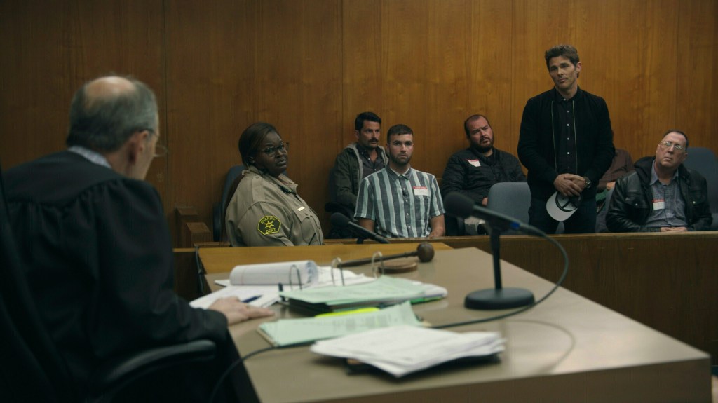 The setup for Jury Duty is that the lead in the show, Ronald Gladden, answered an ad on Craigslist asking for people who would be willing to be filmed going through jury duty for a documentary film and has no idea that the whole experience is scripted and everyone else is an actor. The show also stars actor James Marsden as an asshole version of himself, whose staged attempts to get himself released from jury duty result in the jury being sequestered for the length of the trial, thus creating a fully closed environment for a 3-week-long semi-improvised practical joke. The show’s creators, Lee Eisenberg and Gene Stupnitsk, were both writer/producers on The Office and it really shows in the hilarious situations and trials they put Ronald through. The set is extremely cleverly designed in order to secretly film Ronald from multiple angles in addition to the cameras he actually knows about, and the cast and writers have to be constantly on their toes and willing to flip the script daily or on the fly based on whatever choices he makes. I figure the storyboarding must have resembled one of those choose your own adventure books, where you go to page 12 if he remains calm, page 37 if he freaks out, and back to page 2 if he starts getting suspicious.