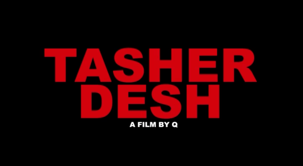 At almost halfway through the film, a title card interrupts and tells us this is Tasher Desh, a play by Tagore and a film by Q.