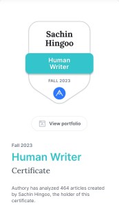 You will be relieved to know that you have been reading the work of Sachin Hingoo, who has been granted a certificate confirming that he is a Certified Human Writer.