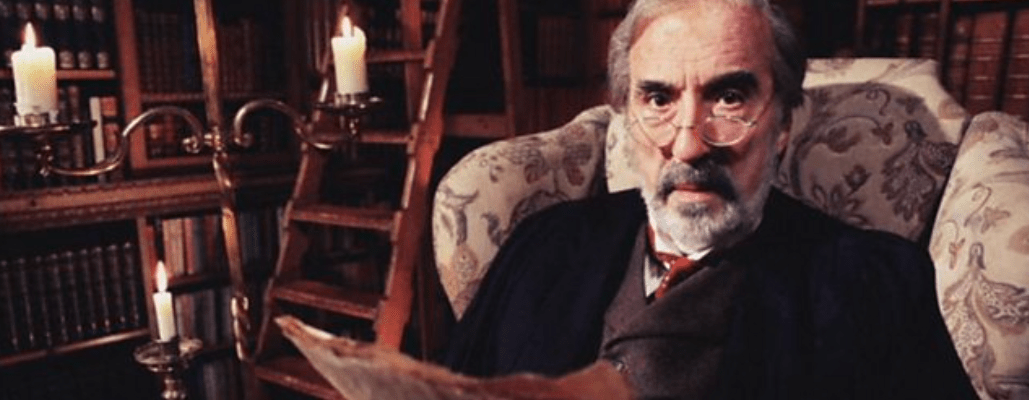 While it isn’t difficult to find glad remembrances of the 1970s Ghost Story for Christmas series, and of course, the more contemporary interpretations earn their own notices, my personal favorite of these series is the BBC’s Ghost Stories for Christmas with Christopher Lee. Other adaptations might stage the stories as happening in real time or insert a different narrator framing device, like a librarian finding a diary, but as I mentioned, this series takes the rather bold approach of adapting the tales for television simply by…televising the tales. That is, with only the stingiest interpolation of cutaways into the environments of the stories–a shot of a winding staircase here, a slow pan over a close-written diary there. The substance of these episodes just shows us Lee as James himself, and…he tells us the story. That’s it. It’s reminiscent of the opening of the Granada Holmes series, when some desperate soul begins relating their misfortunes to Holmes and Watson, segueing naturally into a flashback. It’s much the same here, except it never cuts away into the dramatization we are trained to expect.