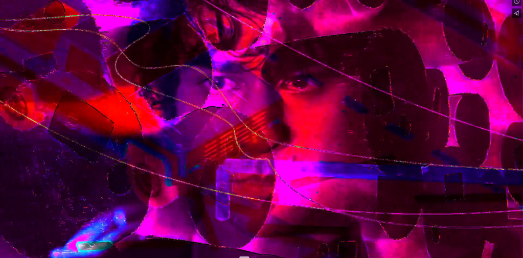 It all started with the Racer Trash collective, a group of decentralized film editors, who had a stated aim to “attack and dethrone cinema.” Working remotely as COVID was just starting to worm its way through us, this self-described ‘freeform collective’ gathered in virtual spaces to plan their assault on traditional narratives and visual conventions, wielding their considerable editing prowess to carve up and rebuild their targets. They would pick a project, often a beloved or perhaps not beloved enough film, cut it into segments (called ‘segs’), and each editor was randomly assigned one to “attack” or re-edit, using filters, overlays, re-engineered soundtracks, and bits from other media to change the tone entirely. The result is a ‘wave’, something akin to a chaotic collage that contains the kernel of the film’s original idea, malformed but with it’s own scrambled beauty.