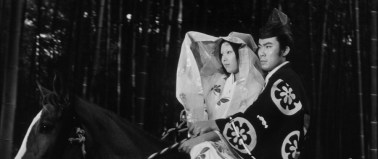 Kuroneko is an unusual anti-war film for 1968 and not just because it’s in black and white. After all, the frenetic madness that is Koreyoshi Kurahara’s 1964 Black Sun is a black and white film. And Black Sun is very much a part of an international cinematic movement showing how angry, rebellious and nihilistic the kids felt in the 1960s as a jazz crazy and insensitive young Japanese man gets it in his head to take a dying African-American GI (Chico Roland) on a road trip. But Kuroneko is a ghost story that seems much more of the immediate post-war era of the 1940s and 1950s–humanistic, historical period pieces that are more oblique in their social messages. At the time, eerie cat demon ladies or no, Kuroneko must’ve seemed just a little bit square compared to something like Black Sun, and just not able to compete with the lurid Technicolor horror of even earlier films like Nakagawa’s Jigoku and Tokaido Yotsuya Kaidan (1959), but Kuroneko has an enduringly eerie quality. In Kuroneko, Shindo combines the grounded, realism of his own post-war films, like the heart-breaking Children of Hiroshima (1953), with a very stylized, formalist atmospheric horror straight out of Japanese traditional theater. Which is fitting, what with ghost stories being so central to the Japanese theater tradition. Nakamura Kichiemon II, who plays Gintoki, was even a kabuki performer and, until his death in 2021, a National Living Treasure of Japan.