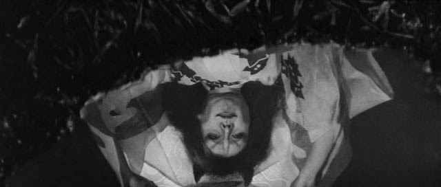 As the evening grows late, Yone withdraws, leaving the couple alone. The samurai is excited at the prospect of getting it on with such a stylish woman and never stops to consider that maybe he shouldn’t follow strangers into the woods, especially strangers living in eerily quiet and nearly empty fancy mansions. The men never consider that they could be in danger. I will give the former farmer from Kawachi that he is the first man to have his throat torn out by a demon cat lady in the film and so his personal safety might not have been on his mind. Shige (and later Yone) linger by Rashomon Gate at night. They lead samurai through the forest to their ghost mansion, tear out the men’s throats and leave the bodies in the grove. Despite knowing there is a cat demon in the forest, and that cat demons appear as women, the subsequent men still follow Shige to their deaths. Shige’s fourth victim is suspicious, but he enters the house hoping to have sex with the Heian cutie. The women leave their fifth victim at Rashomon Gate itself.