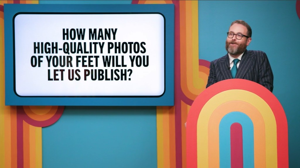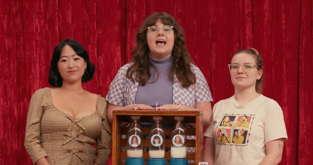 The last couple of seasons of Game Changer have pulled back the curtain on both the production of the show and its devilish machinations in the form of Behind The Scenes ‘making of’ episodes as well as concepts like “Fool’s Gold” that reveal the impetus and the magic behind some of Sam’s wacky games. The latter example is a riff on the ‘Dragon’s Den/Shark Tank’ concept where cast members pitch video concepts to their fellow performers Mike Trapp, Rekha Shankar, and Jordan Myrick in an effort to amass the most views on social media. The pitches ranged from…okay all of them were pretty nuts, from Paul Robalino’s weirdly-satisfying “cover himself in glue and peel it off in huge strips” idea to Izzy and Lily’s “taste test each of our breast milk and try to guess whose is whose” which seemed tailor-made for Jordan, who is a professional food tester and took perhaps too much joy in sampling her castmates’ bodily fluids. Using social media clips with an eye toward getting the most views, it’s somehow both marketing for the show and the very show itself. But the behind-the-scenes episodes also shed light and recognition on the vast crew of writers and prop artists that put these elaborate setups together and craft custom claw machines, an array of custom American Girl doll shoes, and so many more single use sight-gags that have have so much love behind them.