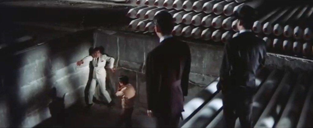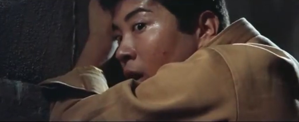 The contrast between the deep emotions of that Funaki scene, underscores the strange suppression of human feeling in Mitsuo’s character inYou Are My Lover. Mitsuo goes further into the dark side when he volunteers to kill a rival gang boss just released from prison. Hesitating to shoot led Mitsuo and the intended victim into a fight, but once the boss was backed into a corner, Ishido’s second in command, Ono, and his men appeared from above and Ono delivered the fatal shots, while Mitsuo hugged a wall in horror. Nevertheless, Mitsuo was paid, and afterwards he took on a yakuza-style swagger that only partially hid his anxieties.